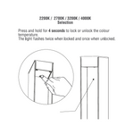 Temperatura de cor (K) 2200K - 2700K - 3200K - 4000K : push selection