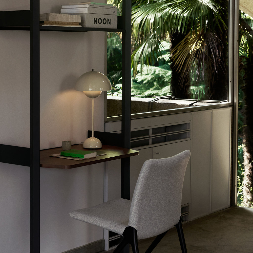 Panton nasceu na tradição do modernismo dinamarquês e criou o seu próprio estúdio em meados da década de 1950. Discípulo de Arne Jacobsen, rapidamente experimentou com formas circulares e esféricas, motivos que se tornariam centrais nos seus projectos. Embora estivesse na vanguarda do Modernismo Dinamarquês de meados do século, a contribuição de Panton foi tudo menos mainstream. Abraçou com entusiasmo novos materiais, fez uso de uma paleta de cores ousadas e imbuiu muitas das suas criações escultóricas com uma forte expressão gráfica e divertida – sem nunca comprometer a qualidade ou o acabamento.