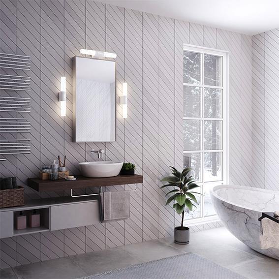 | Descrição | Aplique LED de parede adequado para casa de banho (IP44) Pode ser instalado vertical ou horizontalmente Inclui suporte opcional (cabinet bracket) Disponível em 2 acabamentos |