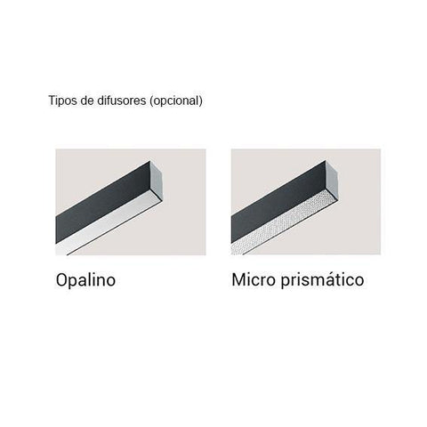 | Materiais | Alumínio extrudido e difusor opalino ou micro prismático (opcional) |