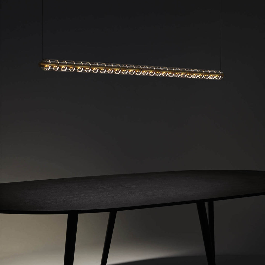 | Descrição | Suspensão tubular linear de design minimalista Inspirada na forma dos isoladores elétricos, esta peça singular é composta por uma sequência de 26 discos luminosos em forma de anel, com acabamento interior em alumínio, que conferem um brilho elegante e tecnológico. Um cilindro de vidro transparente envolve e valoriza a estrutura, acrescentando leveza e sofisticação ao conjunto. Projetada para instalação individual ou em composições dinâmicas, permite criar esquemas com diferentes orientações e alturas, adaptando-se a ambientes contemporâneos e criativos. Disponível nas versões de iluminação direta ou indireta, para uma experiência luminosa personalizada. |