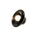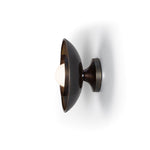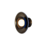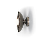 Descrição Candeeiro de parede de design industrial, com globo de vidro opalino e dois abajures concêntricos.