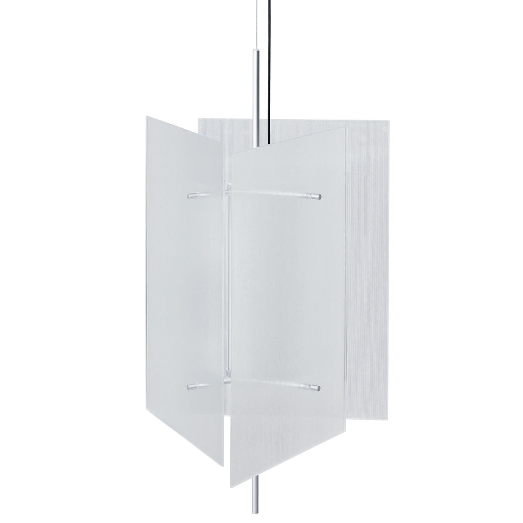 | Materiais | Estrutura em alumínio escovado com abajur em vidro canelado |