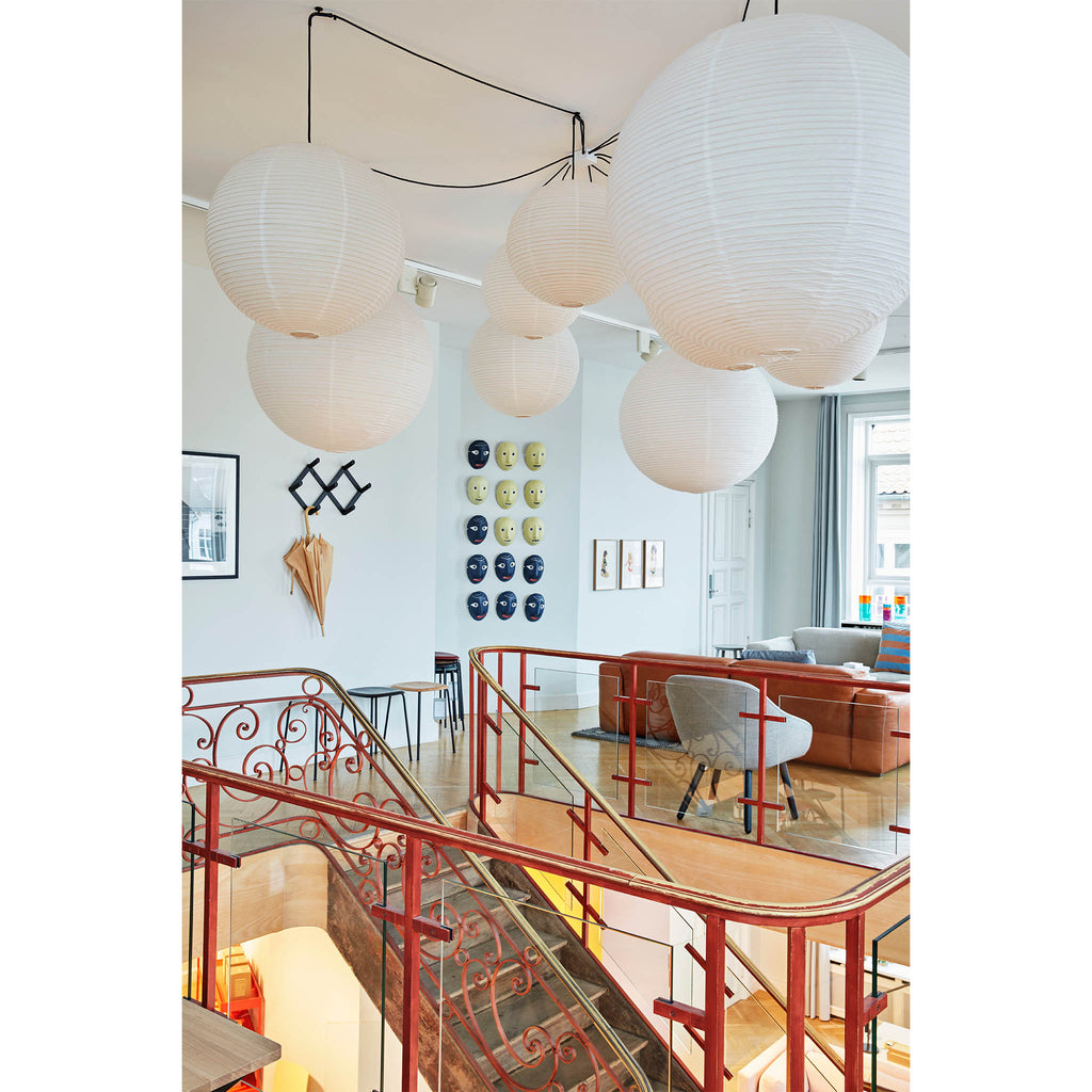 Descrição Com um design clássico de lanterna em papel leve e estrutura de bambu com nervuras, a série Paper Shade da HAY emite uma luz suave e pode ser utilizada em qualquer parte da casa.