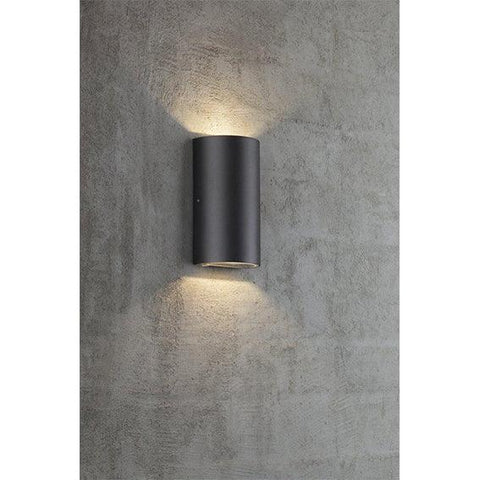 Candeeiro de parede adequado para uso exterior e zonas húmidas (IP44). |
