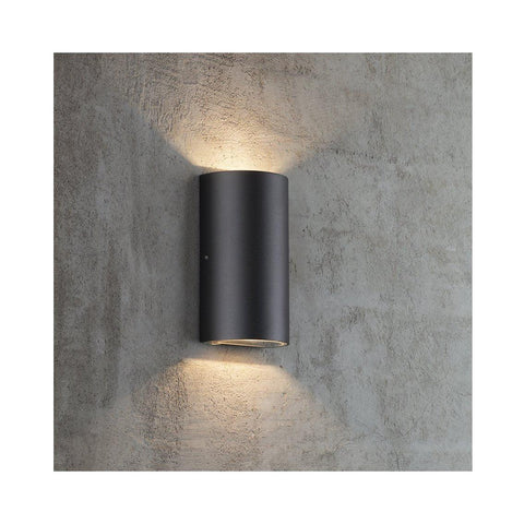 Candeeiro de parede adequado para uso exterior e zonas húmidas (IP44). |