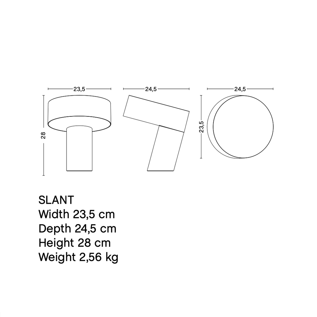 | Referências | AB22129-A588 Slant table lamp soft black AB22129-A399 Slant table lamp khaki green AB22129-A605 Slant table lamp white |